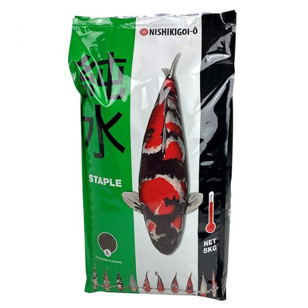STAPLE is verrijkt met spirulina. Spirulina wordt al vele jaren gebruikt door Japanse koi kwekers ter ondersteuning van de gezondheid, het welbevinden en het uiterlijk van de vissen. Zoals alle koi voeders van Nisikigoi-ô is STAPLE een waterstabiel drijvend voer dat een goede observatie van het eetgedrag mogelijk maakt en minimale vervuiling geeft.